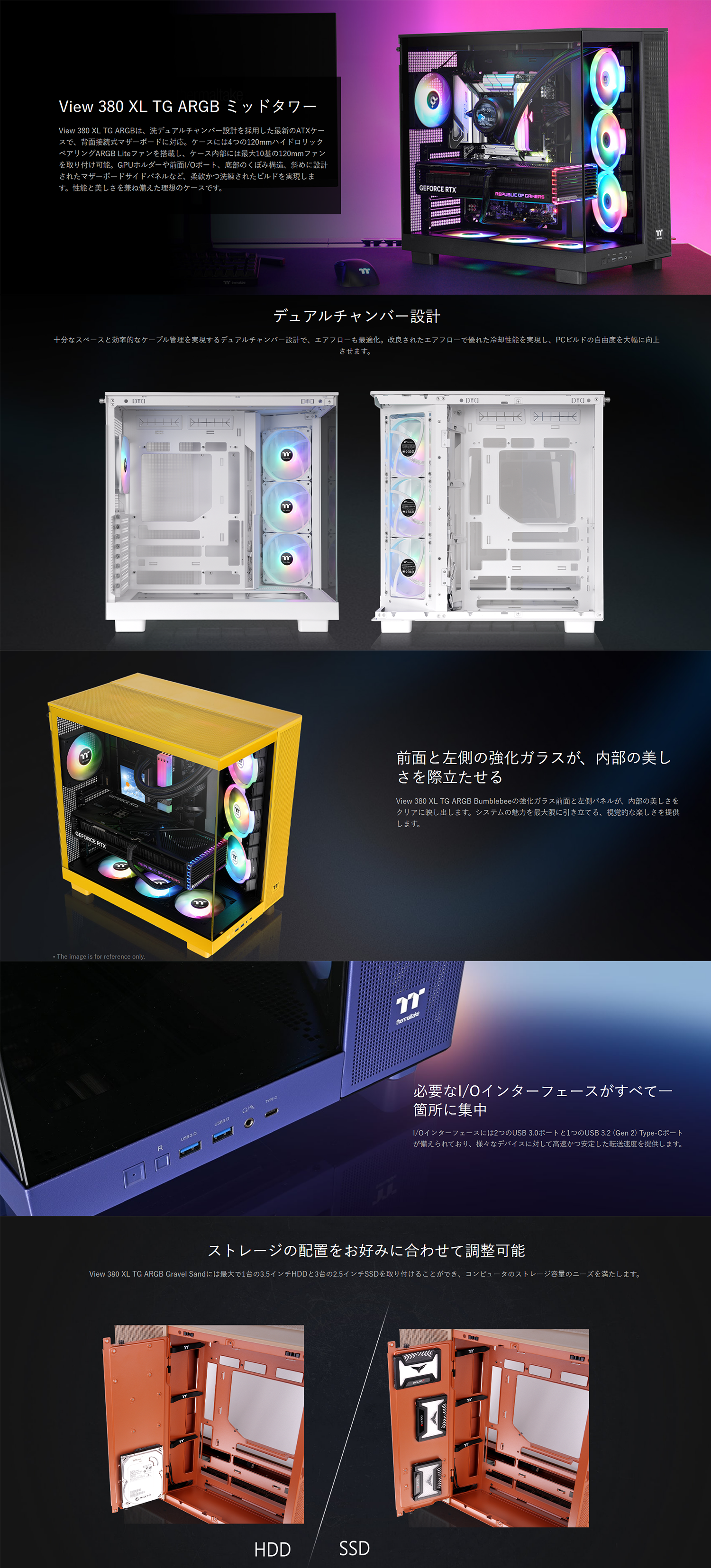 【製品特徴】 ・View 380 XL TG ARGBシリーズ 5色の豊富なカラーバリエーション ・MSI製の高品質パーツを使用した ・7基のファン・360mm簡易水冷搭載 ・ゲーム配信、動画編集も可能 ・安心の1年保証・サポート付 OS Windows11 home CPU AMD Ryzen 7 9800x3d (8コア16スレッド) グラフィックス 【MSI製】RTX 5070 Ti 16G SSD 1TB GEN4 メモリ 32GB DDR5